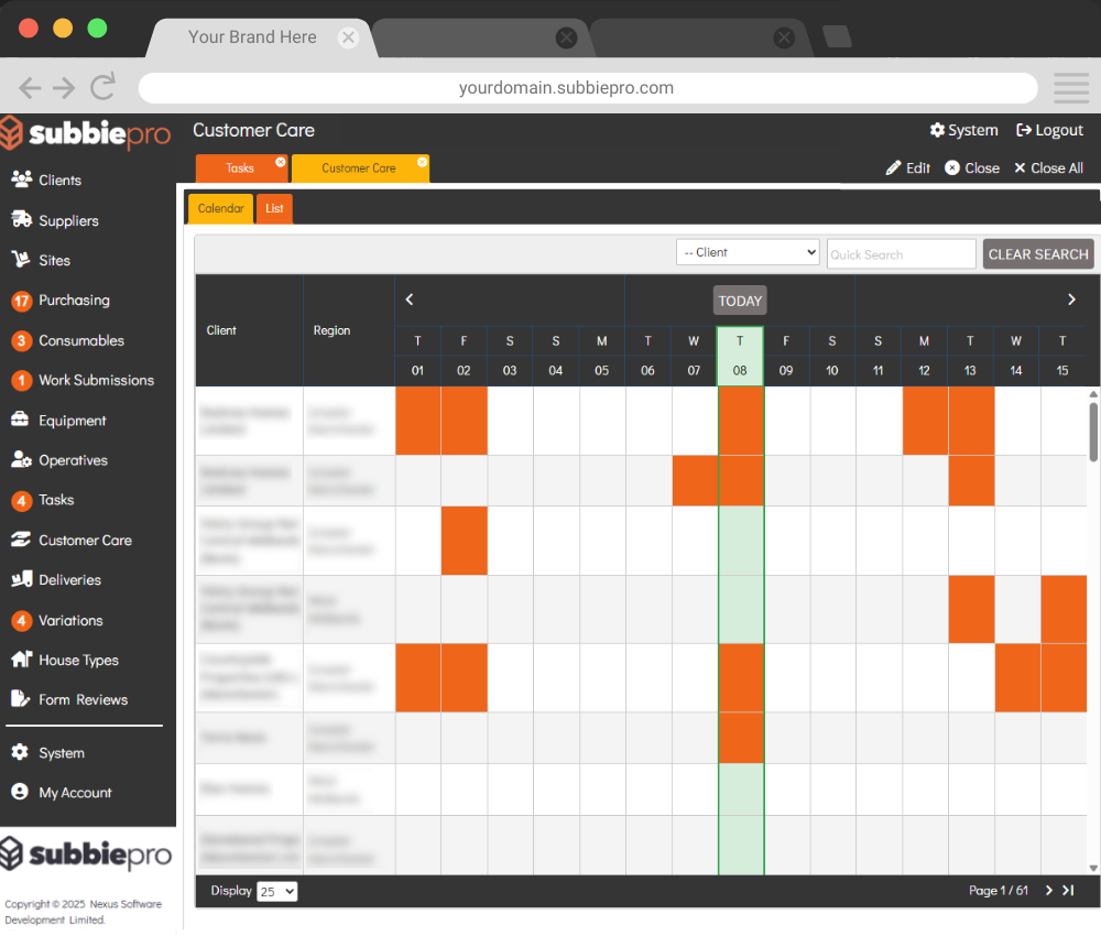 Reduce administration time when reviewing customer care projects, an automated link to all previous projects with the site information carried through to aid any administration team.
