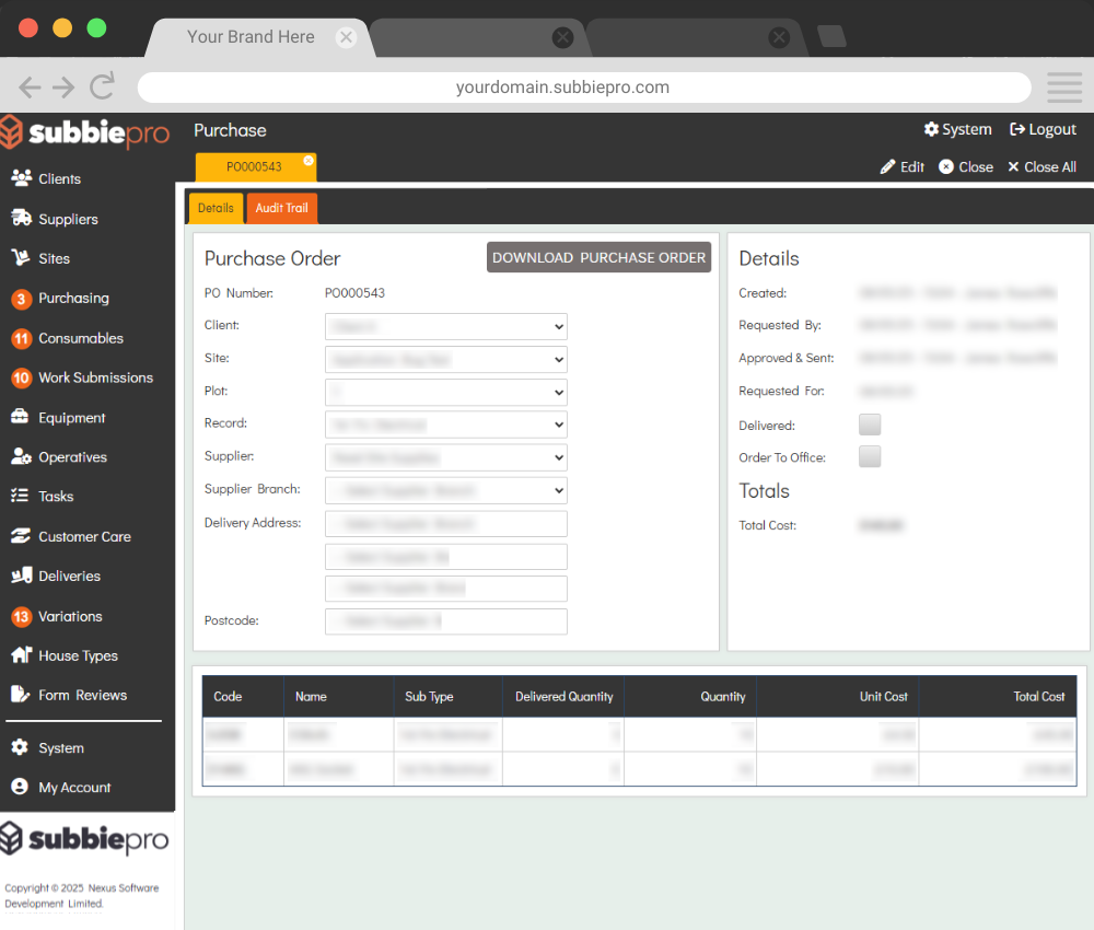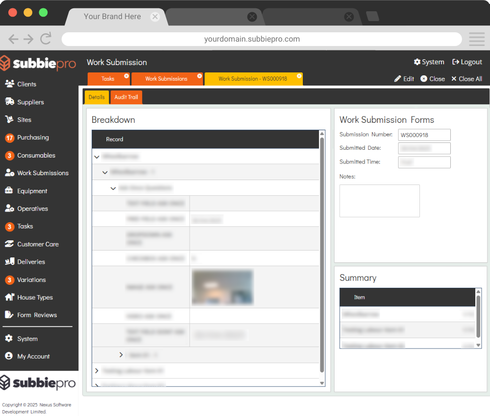 Easy function for billing work complete to your client, along with tracking the payments received against these.